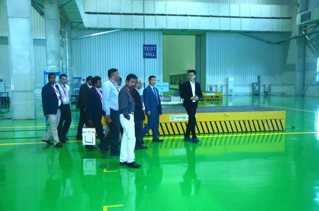 典礼活动后,嘉宾们参观了新落成的厂房, 在场嘉宾对厂房环境,生产设施赞不绝口。印度工厂具备765kV及以下电压等级断路器和组合电器的生产试验能力,生产的设备具备服务于全印度电力用户的能力。